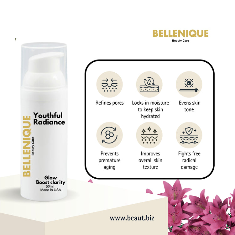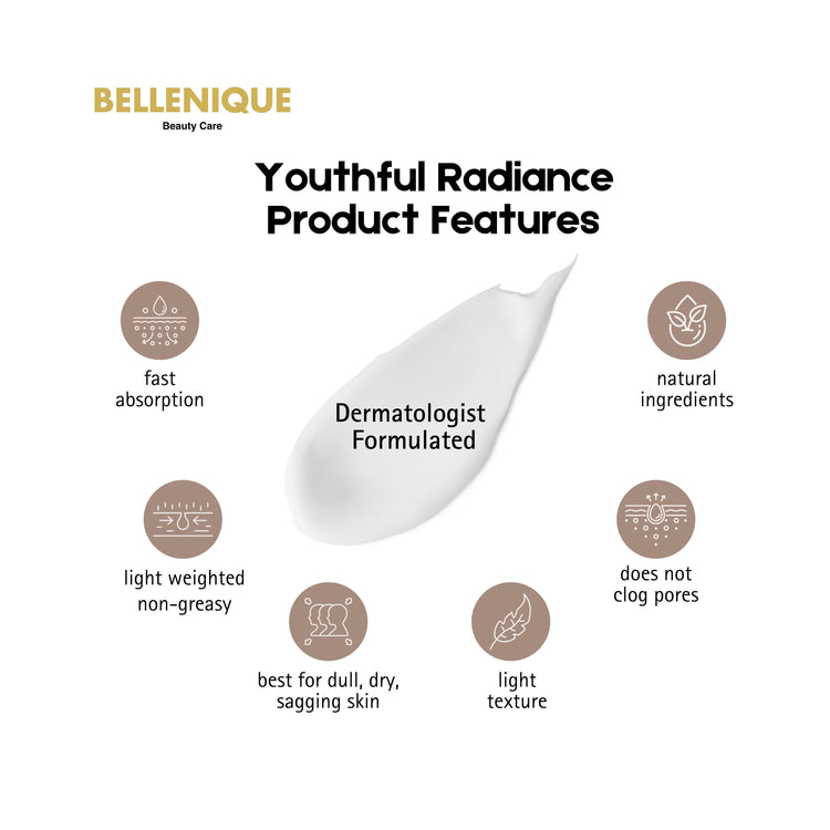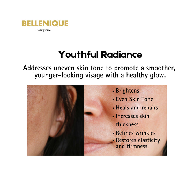 2024 Bellenique Youthful Radiance Addresses uneven skin tone to promote a smoother, younger-looking visage with a healthy glow. 50ml Made in USA
