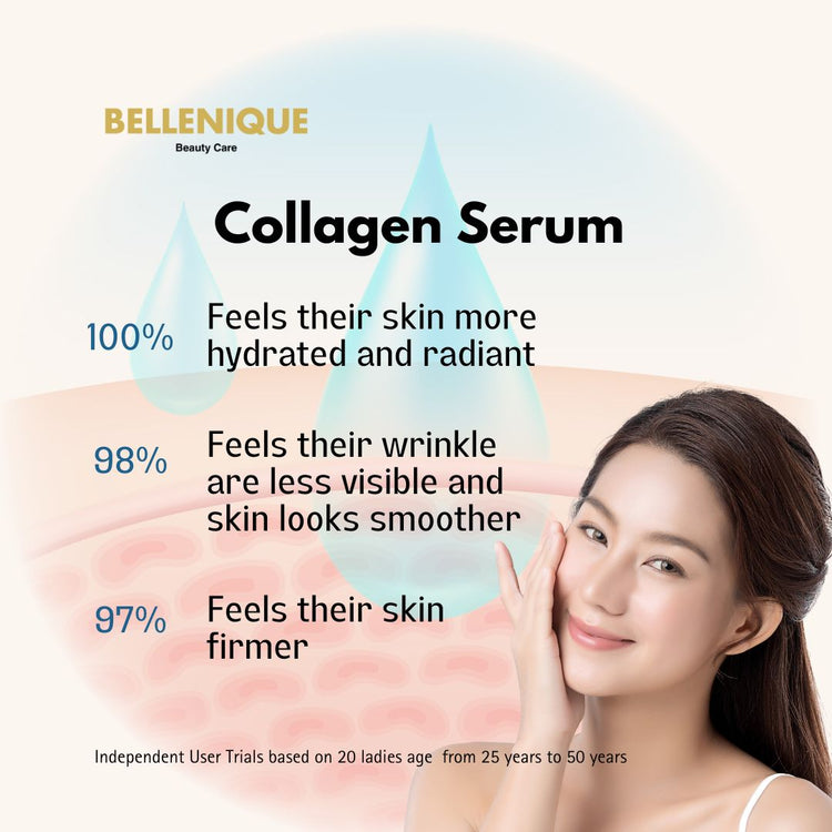 Bellenique Collagen Serum is an anti-ageing serum that helps minimise the appearance of fine lines and wrinkles.