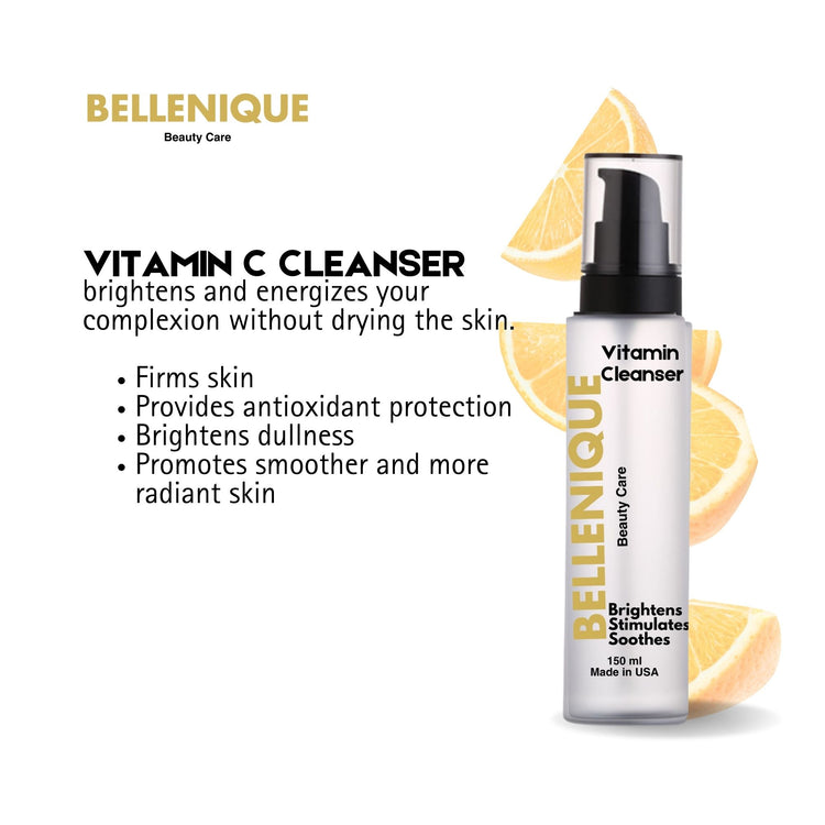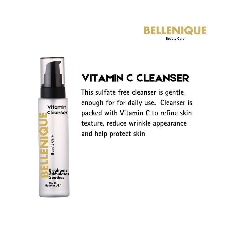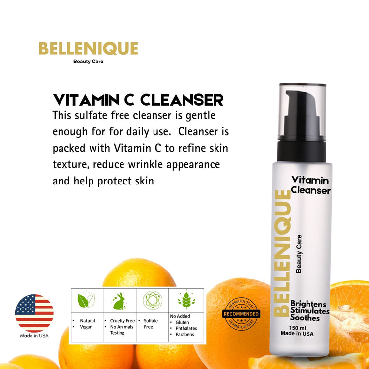 2024 Bellenique Vitamin C Cleanser is Sulfate free. Refines skin texture, reduces wrinkle appearance. 150ml Made in USA