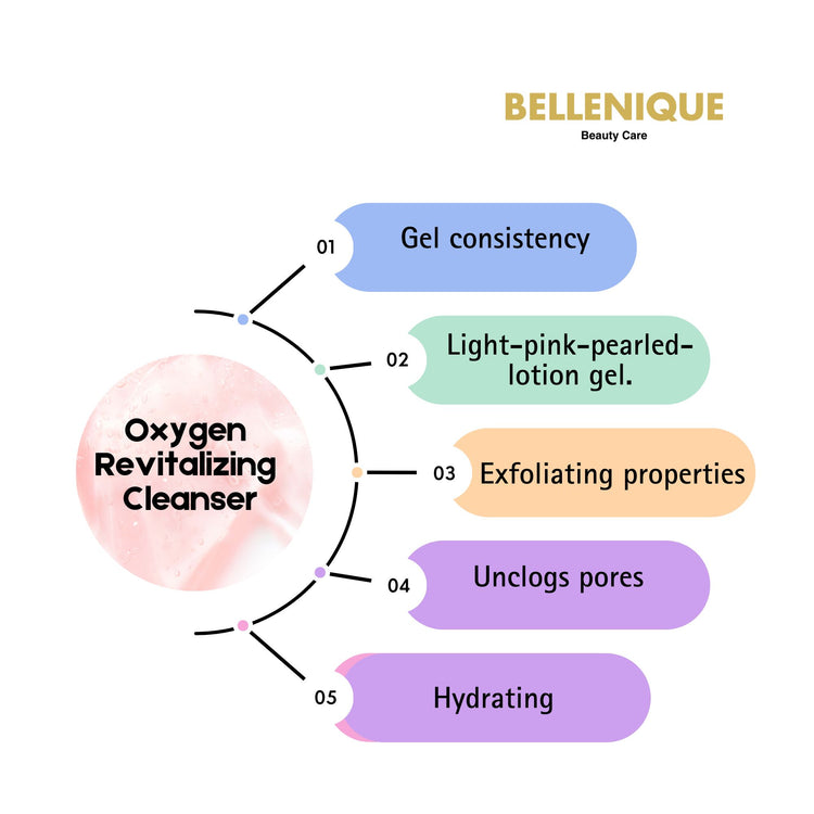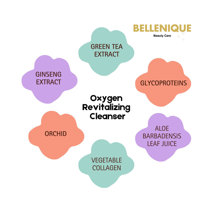 Bellenique Oxygen Revitalizing Cleanser cleanse, invigorating and promotes oxygen revitalizing effects to awaken the skin. This invigorating and revitalizing cleanser awakens the skin with Ginseng, Orchid Extract and Glycoproteins. These key ingredients help to stimulate the skin promoting oxygen-revitalizing effects, which is lost with aging. Japanese Green Tea is incorporated in this cleanser to soothe delicate skin