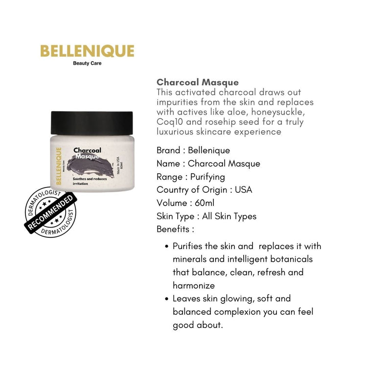 Bellenique Charcoal Masque Purifies the skin and leaves skin glowing, soft and balance 60ml Made in USA